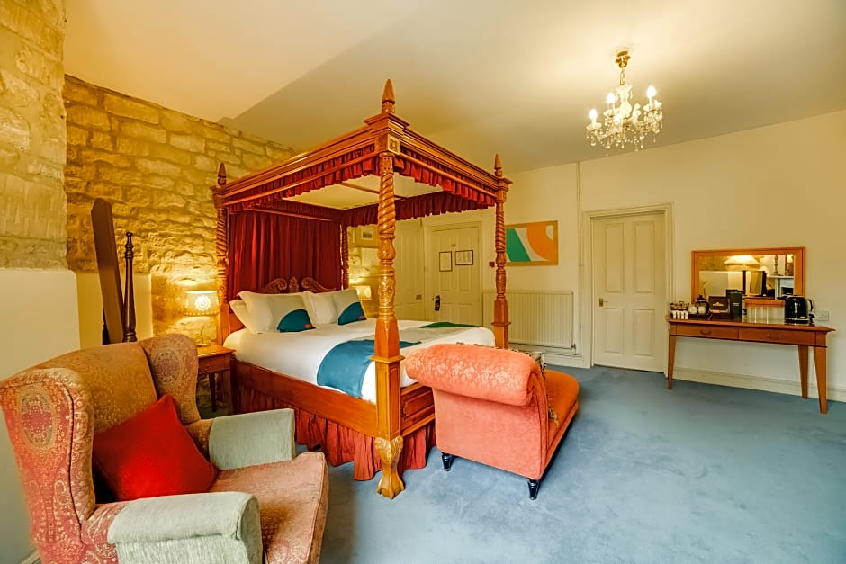 Spacious room with a four-poster bed and room for an extra bed.